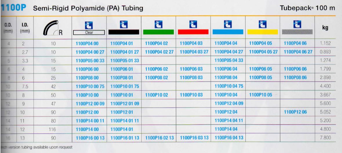 1100P close tolerance semi-rigid nylon tubing, 100m/rolls