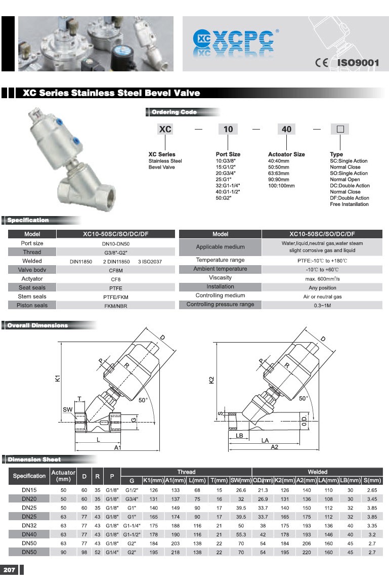 XC-DN10-40-* | 3/8″ | 40MM | *SC : SINGLE ACTION NORMAL CLOSE *SO : SINGLE ACTION NORMAL OPEN *DC : DOUBLE ACTION NORMAL CLOSE *DF : DOUBLE ACTION FREE INSTALLATION |